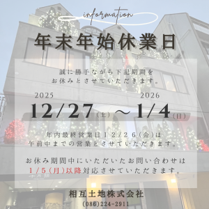 【年末年始休業のお知らせ】